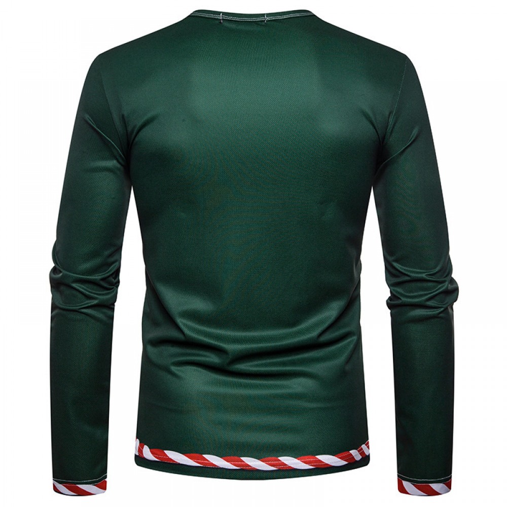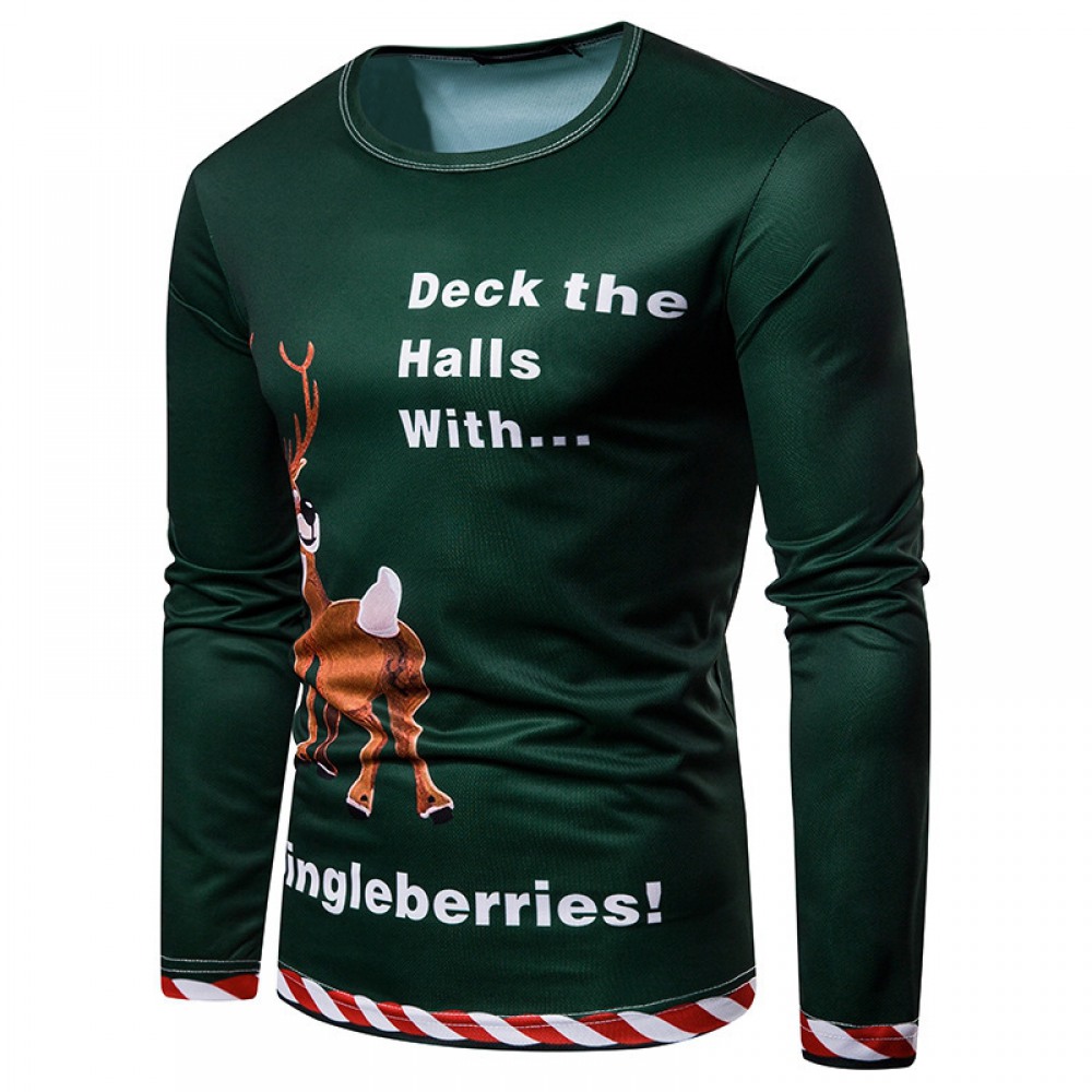 New 3D Personality Printing Fashion Men's Christmas Elk Pattern Long-Sleeved T-Shirt