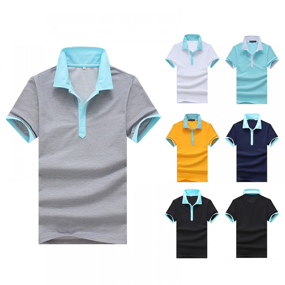 Summer Men's Personality Contrast Color Lapel Short-Sleeved T-Shirt