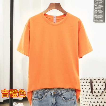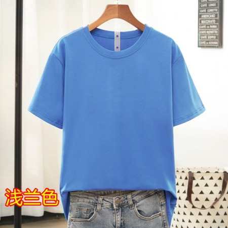 Summer Round Neck Short-Sleeved T-Shirt Couple Loose Version Solid Color Combed Cotton