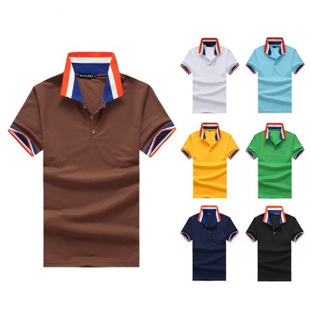 Tiled Personality New Men's Summer Luokou Hit Color Lapel Short Sleeve T-Shirt